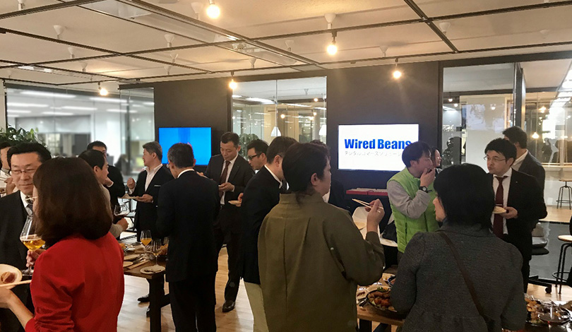 講演のあとは懇親会を開催し、 ここではワイヤードビーンズの「生涯を添い遂げるグラス」をお使いいただきました。